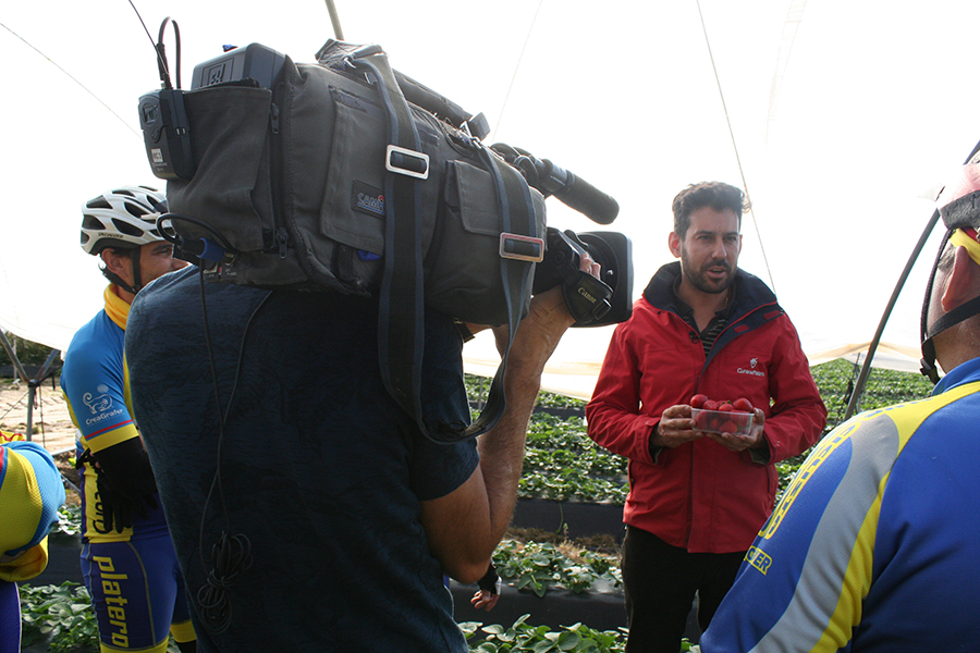 La cooperativa Cuna de Platero será la protagonista de un reportaje realizado para el programa ‘Salud al Día’, de Canal Sur televisión, en el que se invitará a los espectadores a que “visiten Moguer y disfruten de su entorno y magníficos frutos rojos para poner su salud al día”. El material se emitirá próximamente en la cadena autonómica.