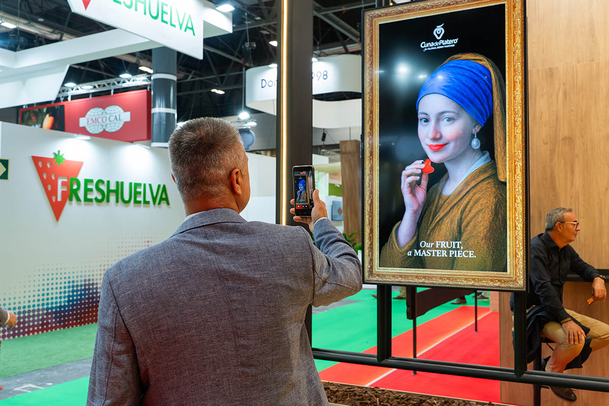 Cuna de Platero ha llevado a Fruit Attraction obras de arte de primer nivel y las ha relacionado con los frutos rojos recreándolas con IA. Bajo el eslogan “Nuestra fruta, una obra maestra”, ha creado un stand que ha sorprendido a visitantes y profesionales.